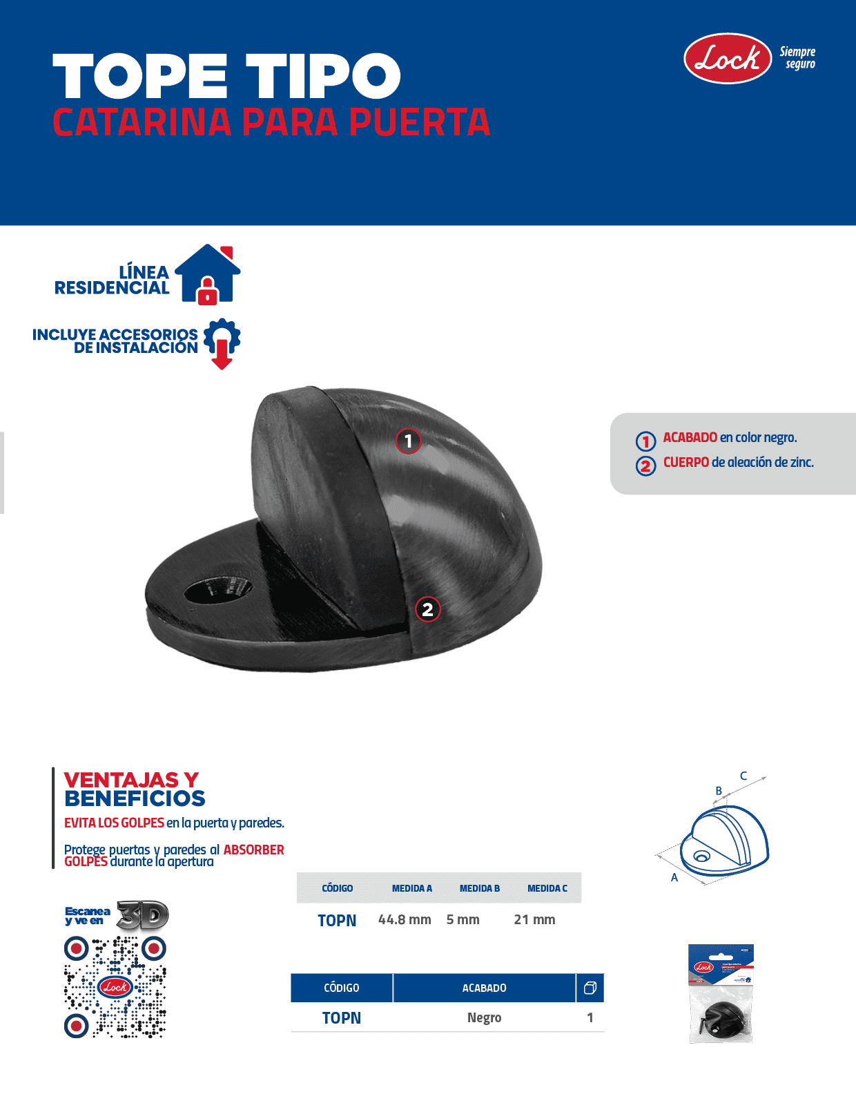 Tope tipo catarina para puerta negro Lock