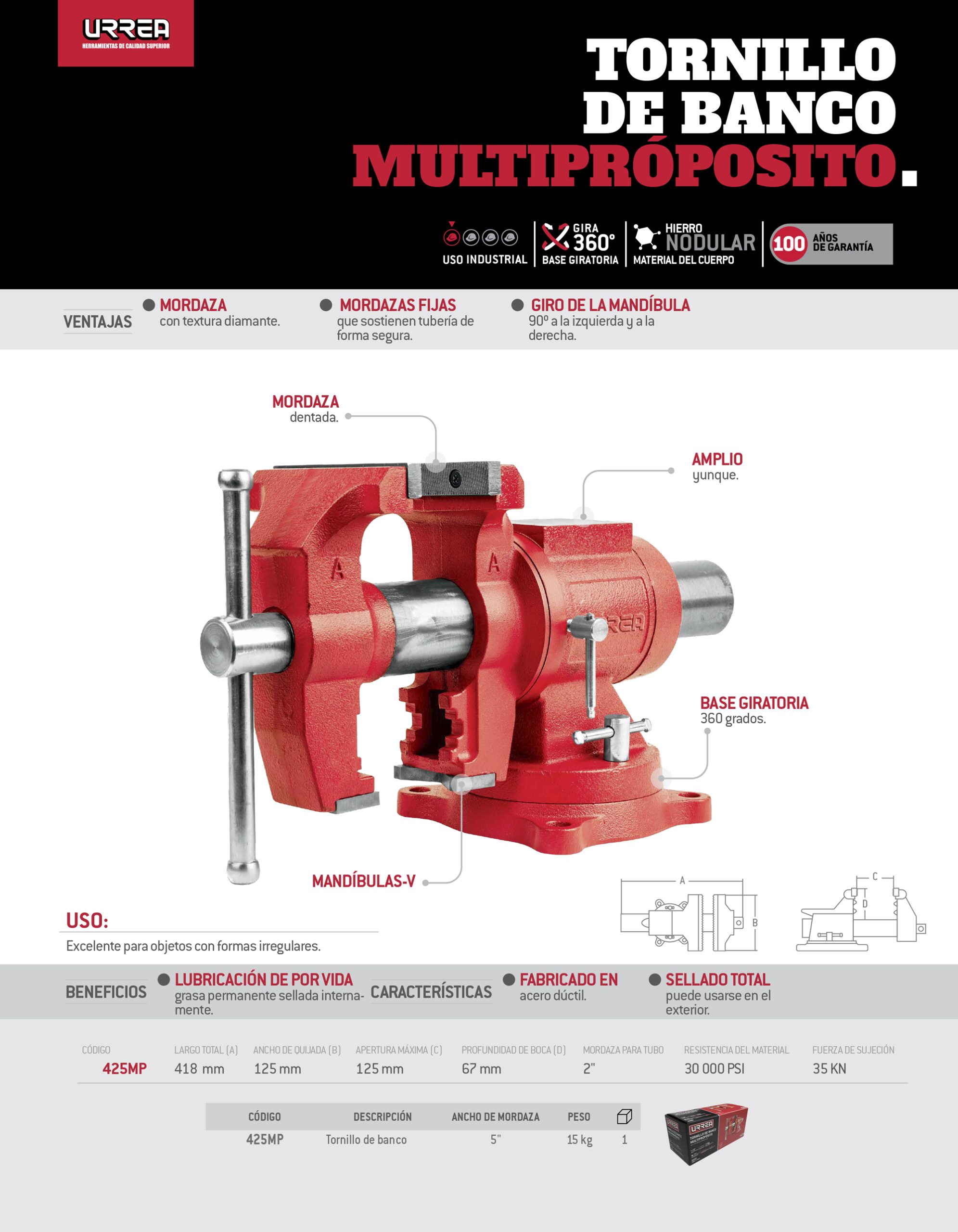 Tornillo de banco 5″, multipropósitos Urrea
