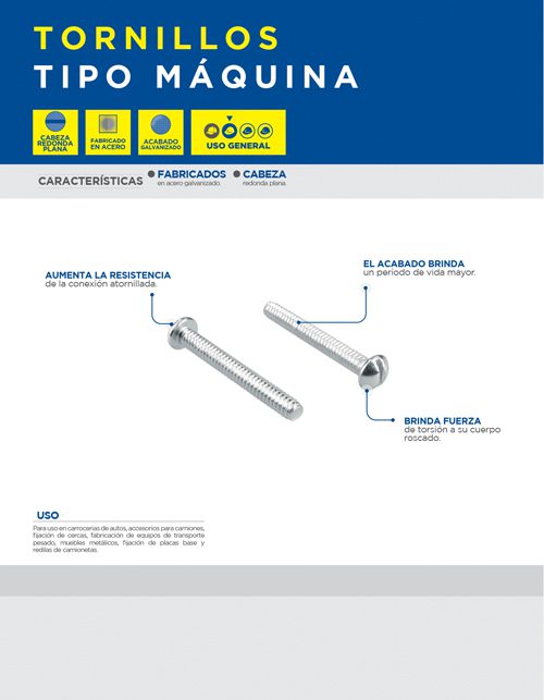 Tornillos tipo máquina cabeza redonda.