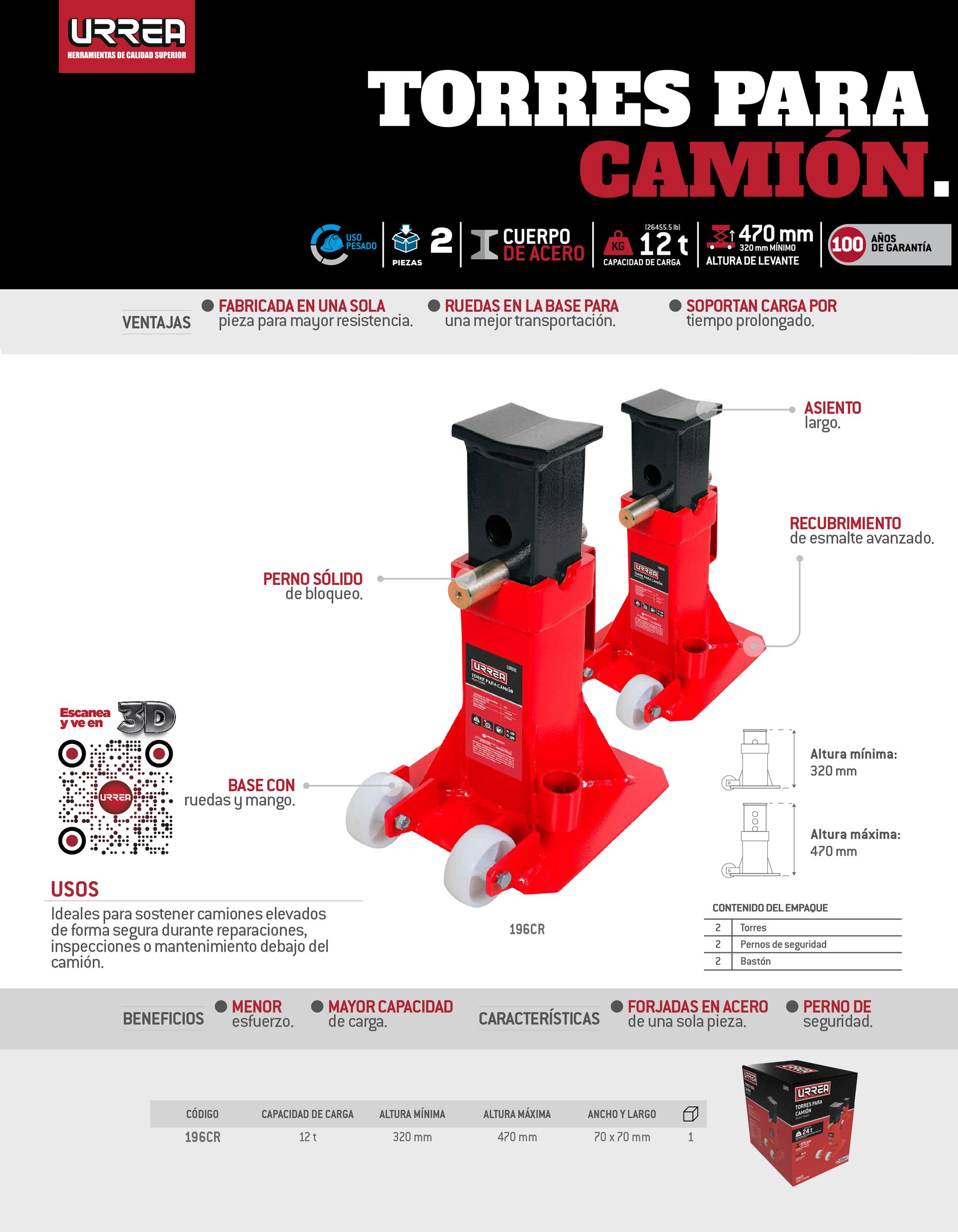 Torres para camión de hierro fundido 12 ton con ruedas, 2 piezas Urrea